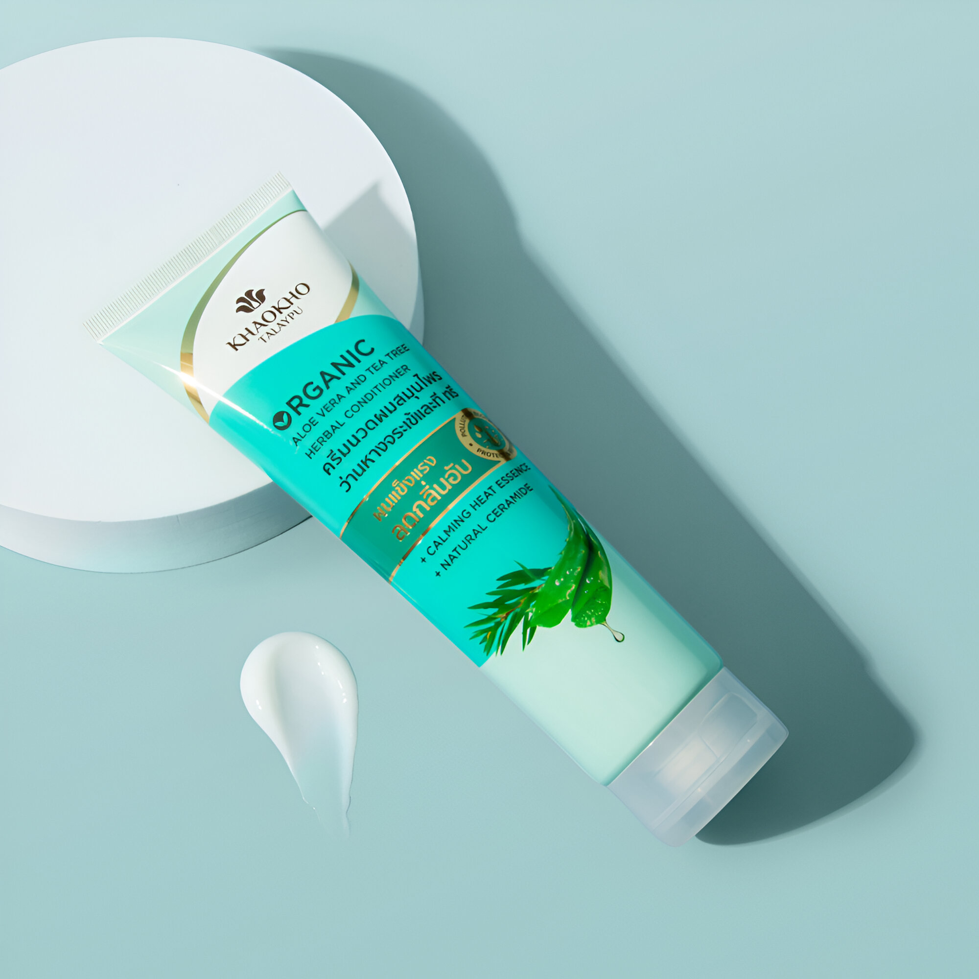 Balsam organic pentru păr KHAOKHO TALAYPU – Arbore de ceai & Aloe Vera este formulat pentru a menține prospețimea părului gras sau mixt, acționând asupra lungimilor și vârfurilor, fără a încărca firul de păr.