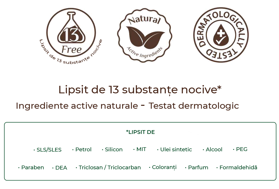 Formulă naturală, fără silicon, parabeni sau substanțe agresive